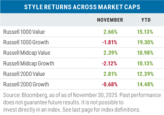 In November, investors rotated into value