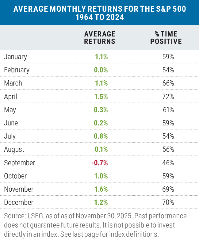 Finally, the seasonal performance pattern for the S&P 500 is also favorable over the near term with what have historically been some of the best months of the year occurring between December and April.